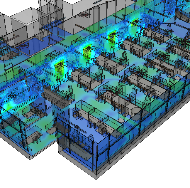 As engineers specializing mainly on mechanical, electrical, plumbing and fire protection services, we utilize CFD Analysis on these common spaces where fluid flows regularly interact: